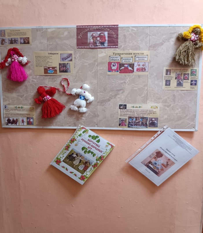 расширяем представление о народной игрушке. В нашем мини- музее организована выставка декоративно- прикладного творчества. Мы привлекаем детей к созданию кукл. Дети сами изготавливают куклы-скрутки. Продолжаем активно знакомить детей с устным народным творчеством, подходящим под их возраст (хороводы, потешки, песни), знакомимся с декоративно-прикладным искусством.