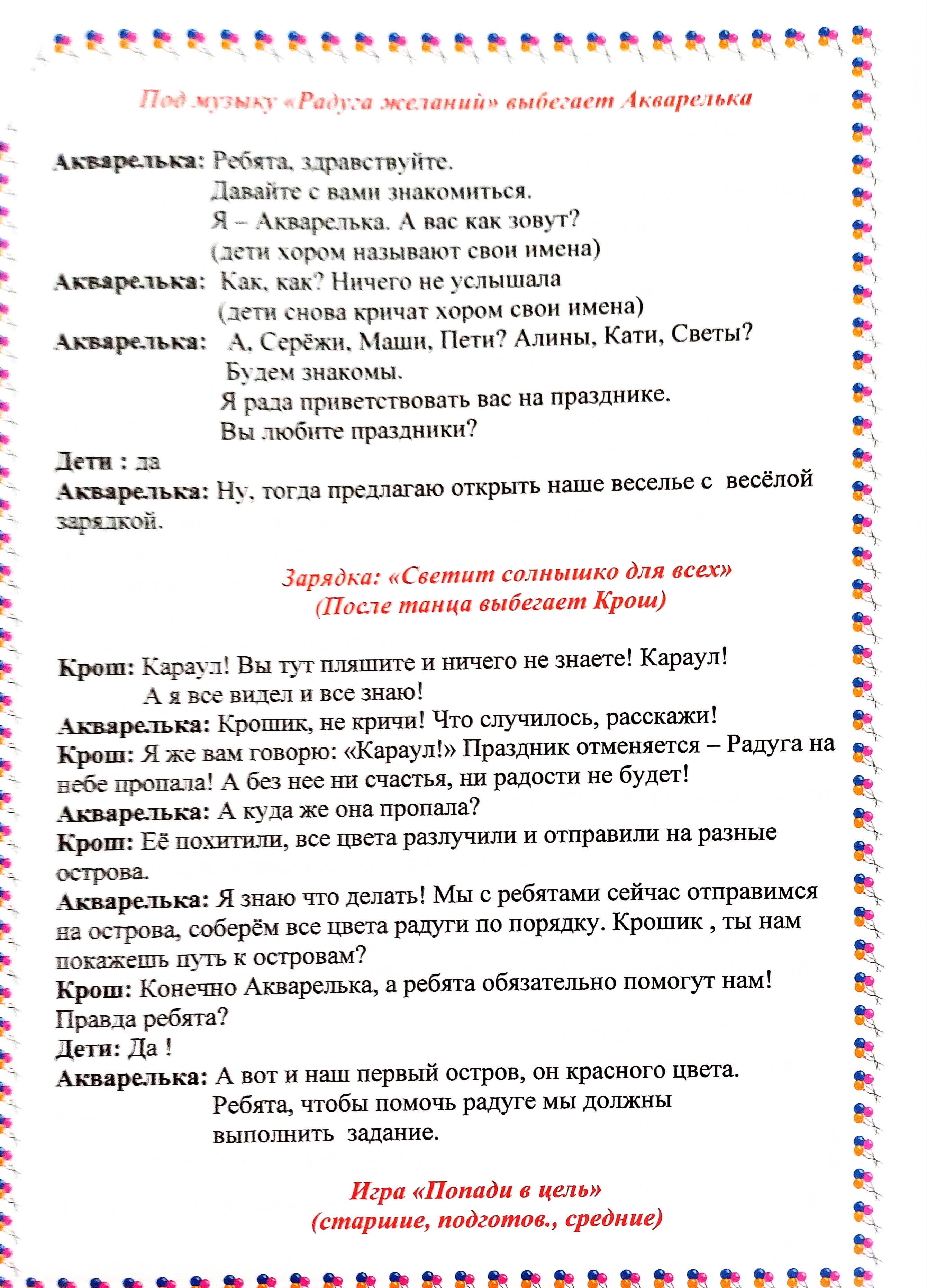Сценарий детского праздника "День Радуги"
