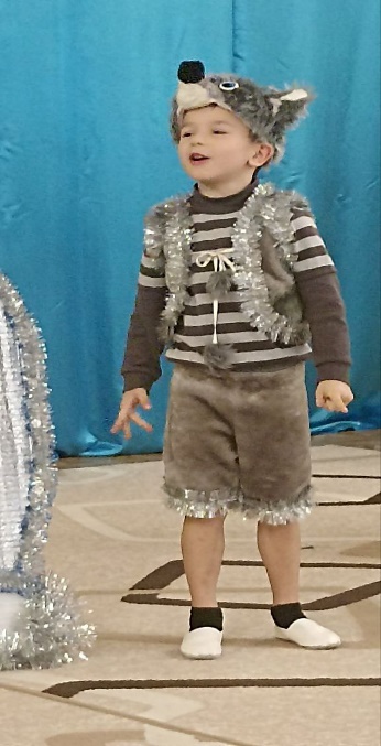 В одном лесу жил - поживал волк. Как- то раз он гулял по лесу и нашел рукавицу.Выход волка под музыку.