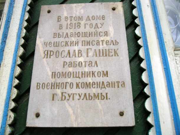 Писателем – сатириком был и Ярослав Гашек, автор примерно 1500 различных рассказов, фельетонов и прочих произведений, из которых мировую известность получил его неоконченный роман «Похождения бравого солдата Швейка». Мы сейчас находимся около этого литературно – мемориального музея, единственного в стране. С октября по декабрь 1918 года, в разгар гражданской войны, Гашек служил помощником военного коменданта Бугульминского уезда. Воспоминания об этом периоде содержатся в его "бугульминских" юморесках. Есть предположение, что писатель собирался даже создать роман "Швейк в Бугульме". Гашек собирался провести своего героя через плен в России и службу в Красной Армии, поэтому "Швейк в Бугульме" должен был стать последующей частью комической эпопеи.