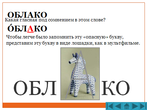 Мнемонические приемы запоминания облегчают запоминания внешнего облика «трудных» букв путем образования ассоциаций.