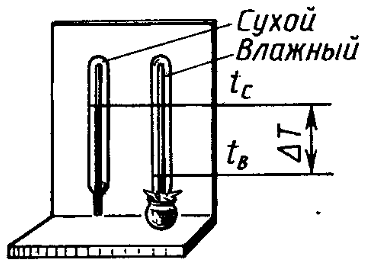 1. Определяем температуру воздуха сухим термометром.