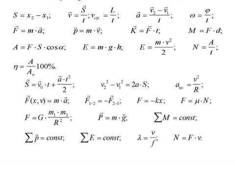 - смысл физических величин: скорость, ускорение, масса, сила, импульс, работа, механическая энергия, внутренняя энергия, абсолютная температура, средняя кинетическая энергия частиц вещества, количество теплоты, элементарный электрический заряд;