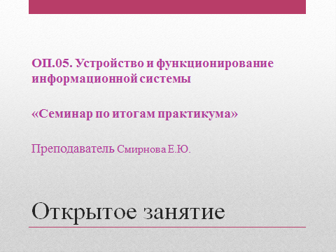 В рамках открытого занятия ставились следующие содержательные задачи занятия: