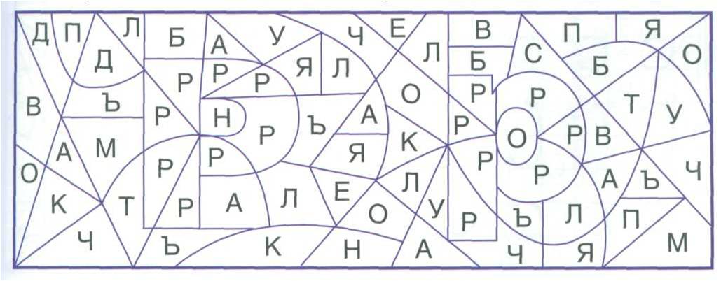 Настя, тебе нужно найти и раскрасить букву Р, которую мы с тобой начали учить (Ребенок обучается по 1 классу):