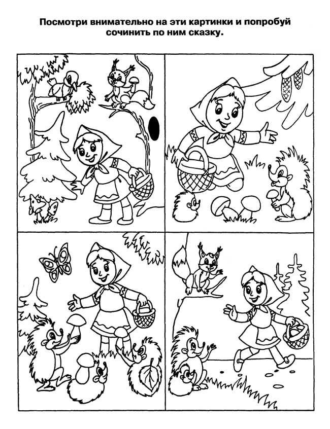 Ребенку нужно раскрасить картинку и составить по ней сказку (Ребенок обучается по букварю):
