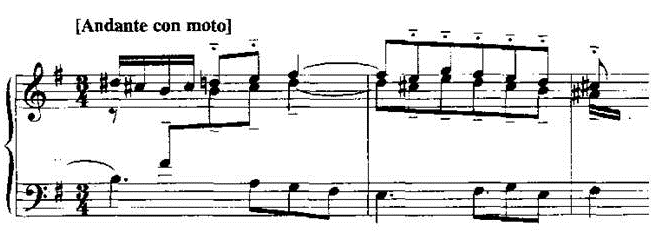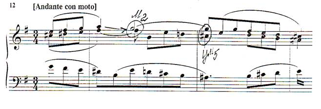 Глубокой опоре всей руки на полно звучащих нижних тонах терций противопоставляется легкое пальцевое прикосновение к верхнему голосу, исполняемому nonlegato приемом от клавиатуры и на пиано.