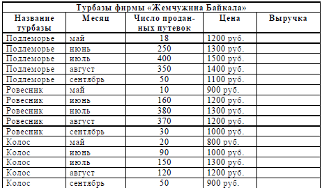 Задание 2.Открыть файл Турбаза и выполнить задания, следуя указаниям.