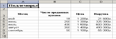Отформатируйте заголовок таблицы кнопкой ОБЪЕДИНИТЬ И ПОМЕСТИТЬ В ЦЕНТРЕ или Формат/Ячейки/Вкладка Выравнивание/отображение- объединение ячеек. Начертание шрифта-полужирное.(предварительно выделите диапазон A3:D3)