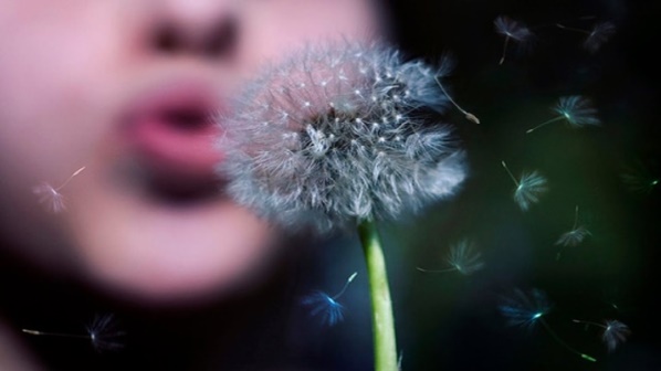 Дунуть прямо в пальчики и резко разомкнуть их в стороны, как - будто пушинки разлетелись.