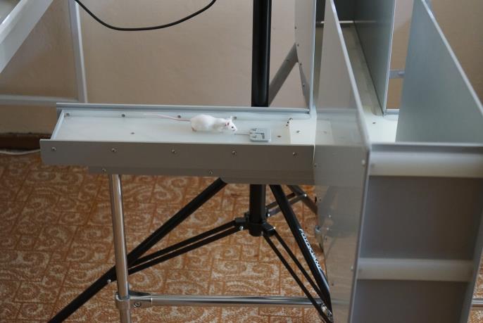 Фото 5. Мышь лабораторная в крестообразном лабиринте.