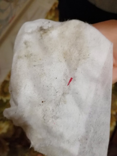 2 день: без влажной уборки, провожу ватным диском. Имеется небольшое количество пыли.