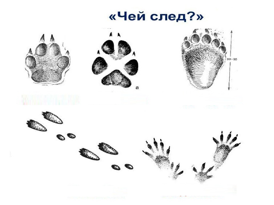 Рисунок «Чьи следы» - https://infourok.ru/prezentaciya-na-temu-puteshestvie-v-les-1541518.html