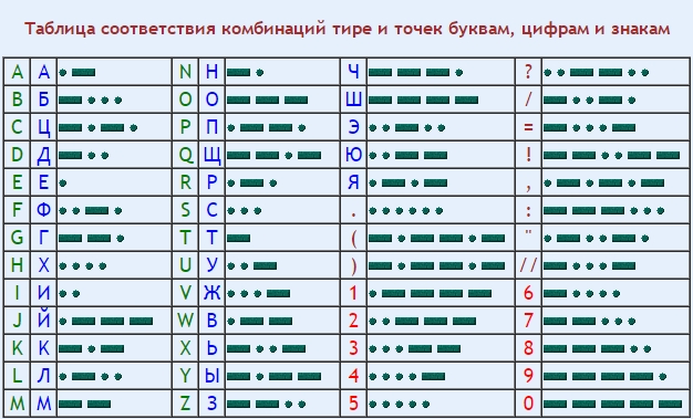 Таблица соответствия комбинаций тире и точек буквам, цифрам и знакам - http://forums.kuban.ru/46143037-post5.html