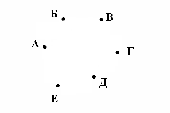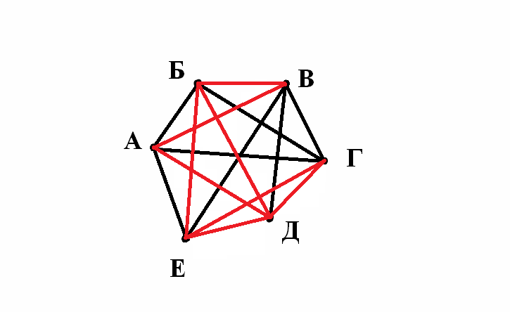 Изобразим данные задачи в виде схемы. Участников будем изображать точками: Андрея – точкой А, Бориса – точкой Б и т.д.