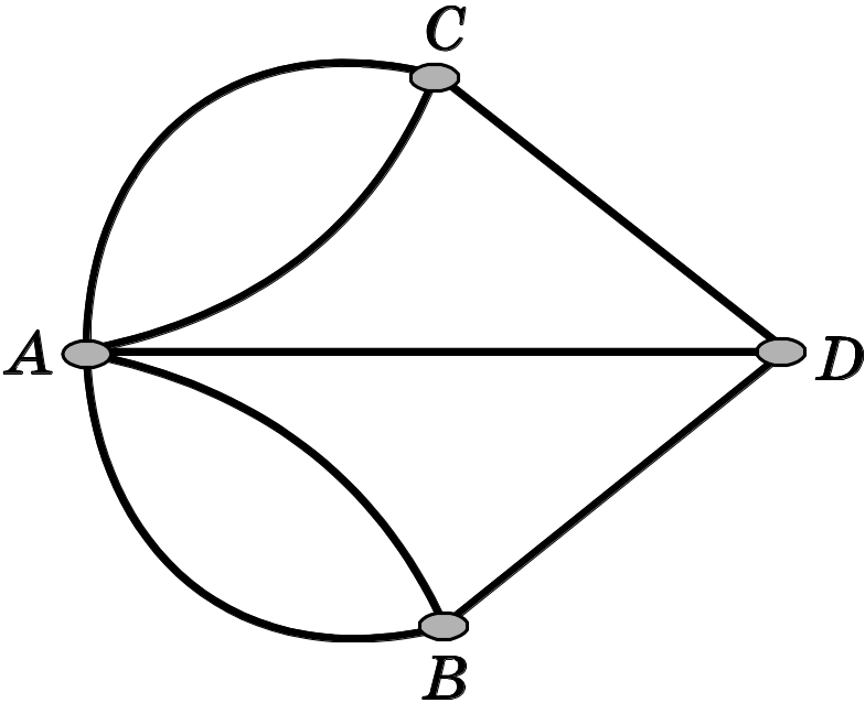Прогуляться по городским мостам предложили и Эйлеру. После безуспешной попытки совершить нужный обход он начертил упрощенную схему мостов. Получился граф, вершины которого – части города, разделенные рекой, а ребра – мосты.