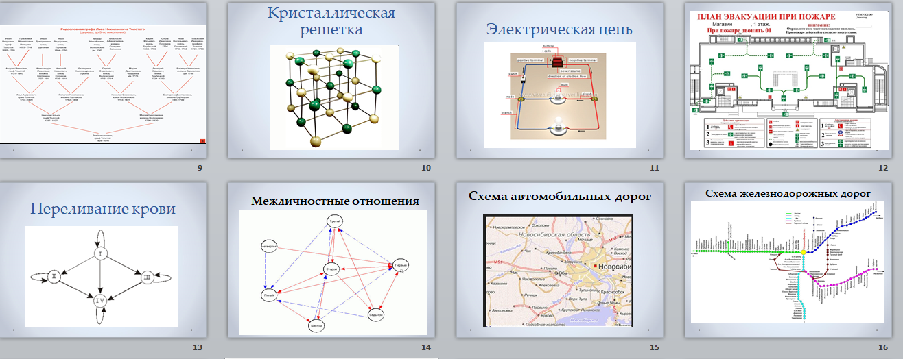 В качестве примеров ученики могут привести следующие примеры: схемы железных и автомобильных дорог, тепло– и электросети, дерево каталогов, планы выставок и другие.