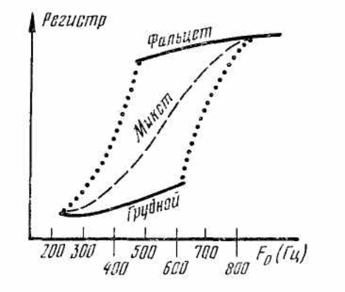 различные варианты регулировок между грудным и фальцетным голосом, а средняя