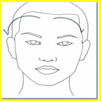 | И поглажу лоб, Чтоб он хмуриться не мог | Поглаживание лба от центра к вискам. |