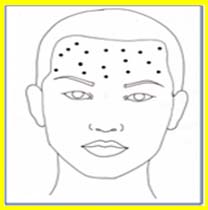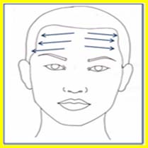 | Как погладить лобик нам Не сдвигая кожу там. | Круговые растирание от середины |
