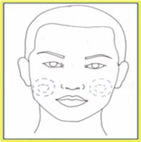 | Пожалею щёки я, Поглажу их любя. | Легкое круговое поглаживание щек. |