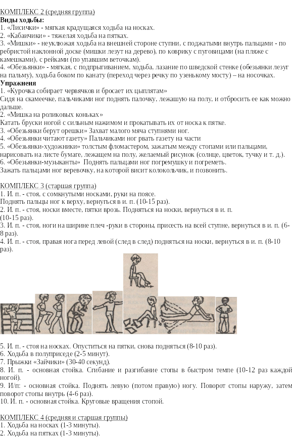 На каждое занятие включается несколько упражнений. По мере овладения упражнений детьми добавляются новые.