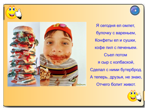 (Вредные продукты вредят здоровью, могут вызвать заболевания, нарушают пищеварение)