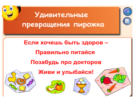 - Предлагаю подойти к столу и выбрать для себя продукт питания, помогающий быть здоровым