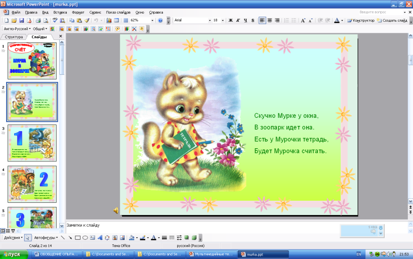 Рис. 1. Фрагменты презентации «Мурка в зоопарке».