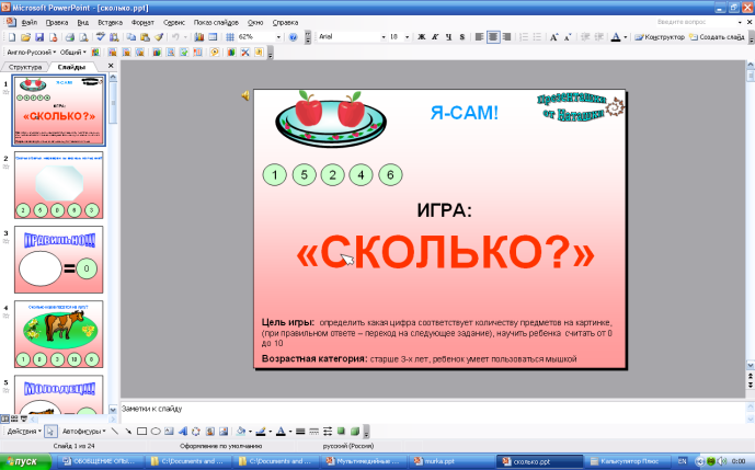 Рис. 3. Фрагменты презентации «Игра: сколько?»