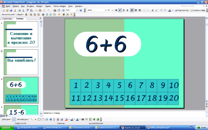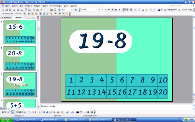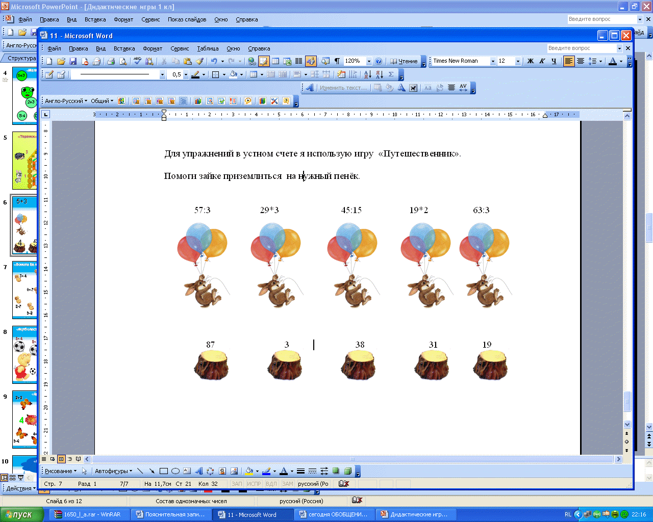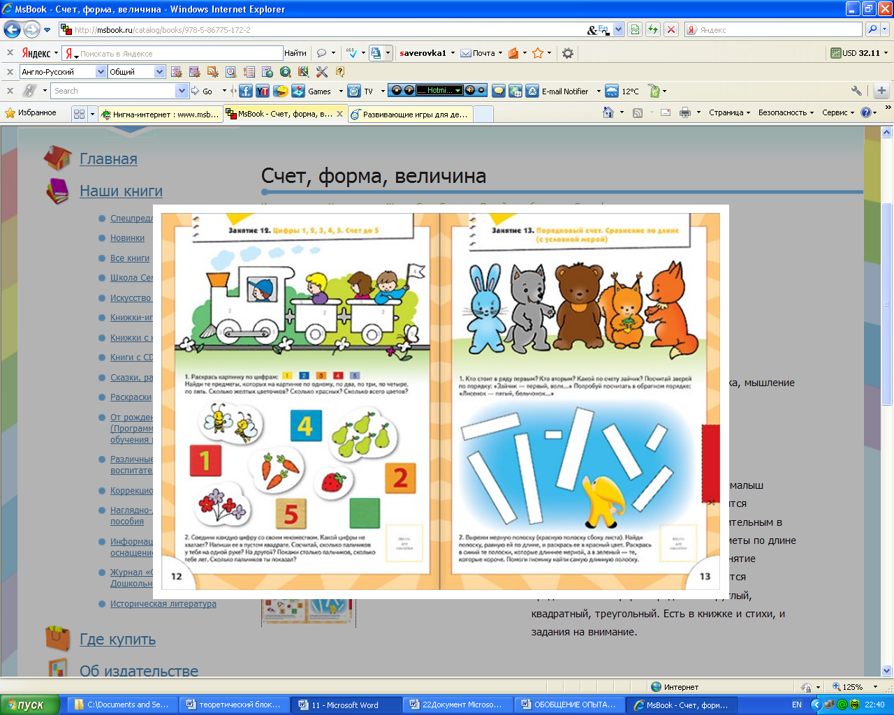 Поэтому уже на занятиях предшкольной подготовки по математике я уделяю большое внимание формированию навыков количественного и порядкового счёта. Для формирования прочных вычислительных навыков я применяю: