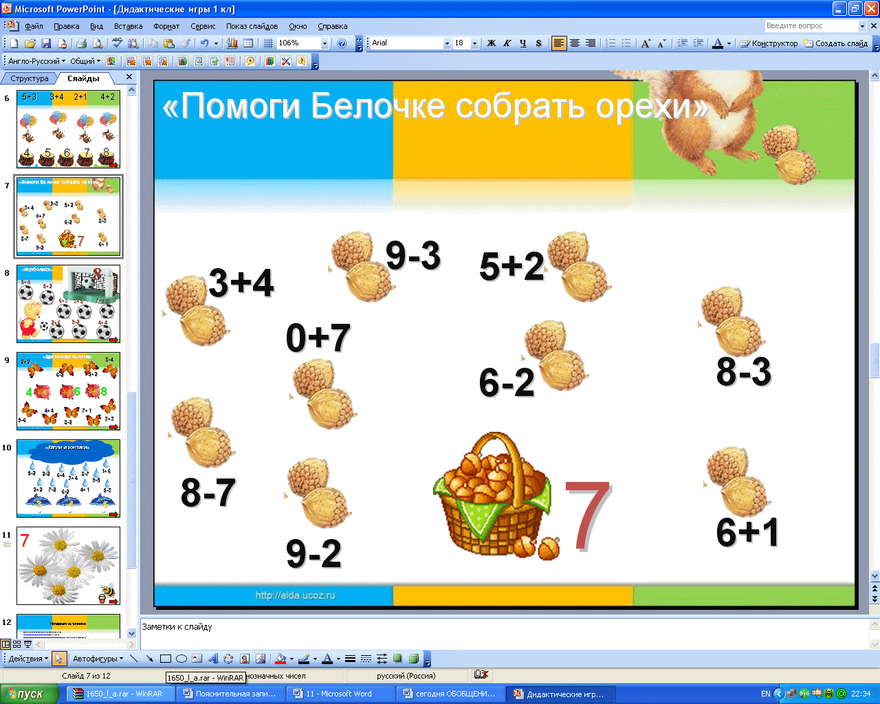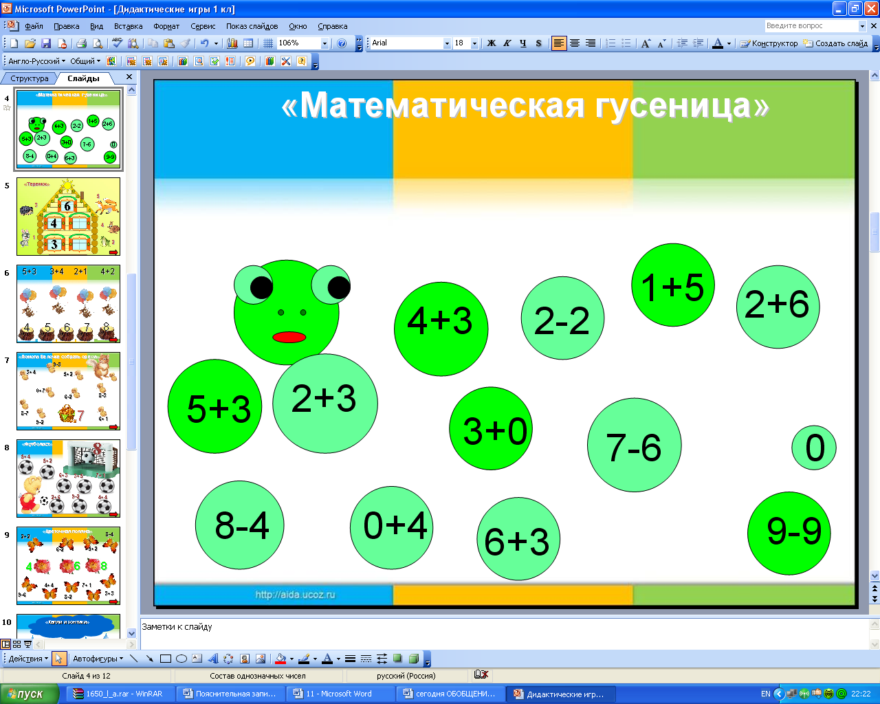 (Слайд 12)Для активизации мышления и интереса к вычислительным упражнениям, создания эффекта новизны я использую дидактические игры.
