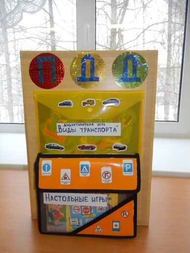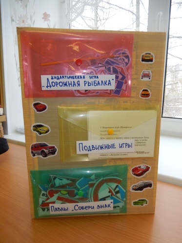 Данный раздел представляет собой кармашек с подборкой подвижных игр по ПДД (карточки меняются по возрастам).