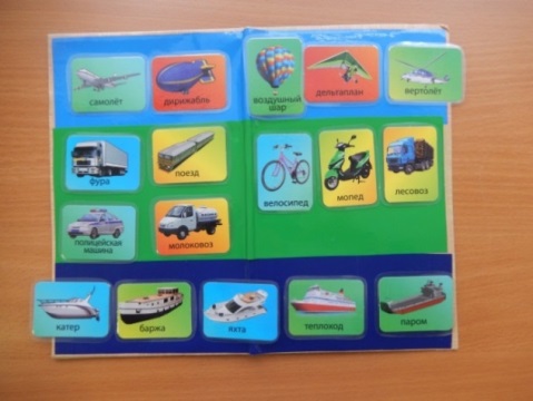 Задачи: способствовать умению детей различать, называть, классифицировать разные виды транспорта по способу передвижения (воздушный, наземный, водный), по назначению (спецтехника, легковой, пассажирский, сельскохозяйственный, строительный, спортивный транспорт).Обогащать и активизировать словарный запас детей.