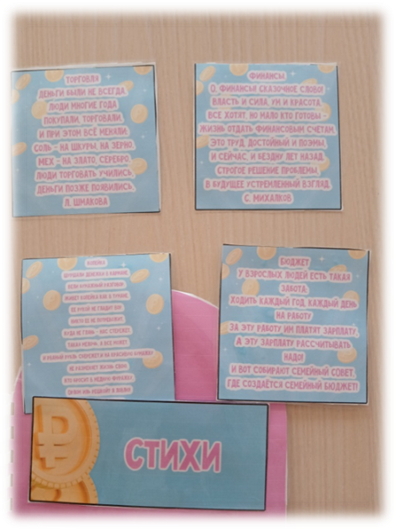 5. | Стихи | Ознакомление детей наглядно с экономическими ситуациями в повседневной жизни человека. |