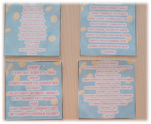 Были введены игровые элементы, интерактивных игр и заданий, связанных с финансовыми понятиями. Играливдидактическиеигры:хочу-надо,дорогойтовар-дешевый товар, распределяли бюджет на разные категории расходов (еда, одежда, развлечения), или же игра, где они учатся считать сдачу при покупке товаров.
