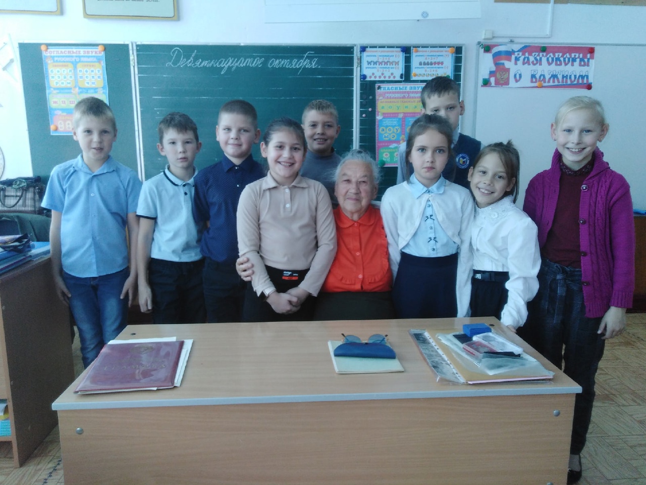 Дети 3 класса с большим удовольствием слушали рассказ Александры Анатольевны, рассматривали награды, грамоты, благодарности и фотографии.