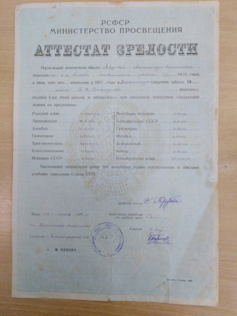 2.Документы, фотографии из семейного архива Абрамовой А.А. и архива школьного музея.