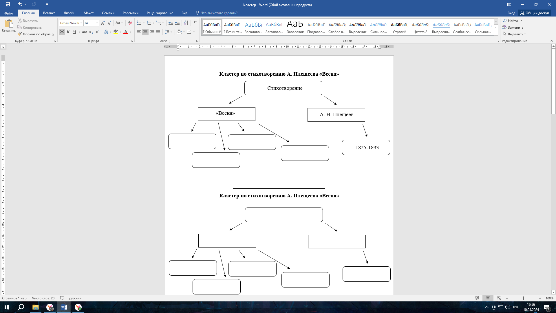 «Кластер» - Мы изучили сегодня только одно стихотворение, я предлагаю вспомнить самое главное. Составим кластер. Подпишите фамилию и имя.