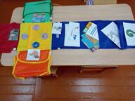 Описание. Данное пособие представляет собой сшитые полотна в форме разноцветных дорожек имеющее четыре направления. Дорожки в середине соединяются, на месте их соединения расположен кармашек, в котором могут помещаться различные предметы (сюрпризный момент) для изучения данной темы. Дорожки пронумерованы и разделенные на карманы, символизирующие различные этапы. В этих карманах находится информация на бумажных и цифровых носителях, могут находится и предметы (которые необходимы при изучении данной темы) кроссворды, ребусы, загадки, раскраски, игры, маски и т. п.