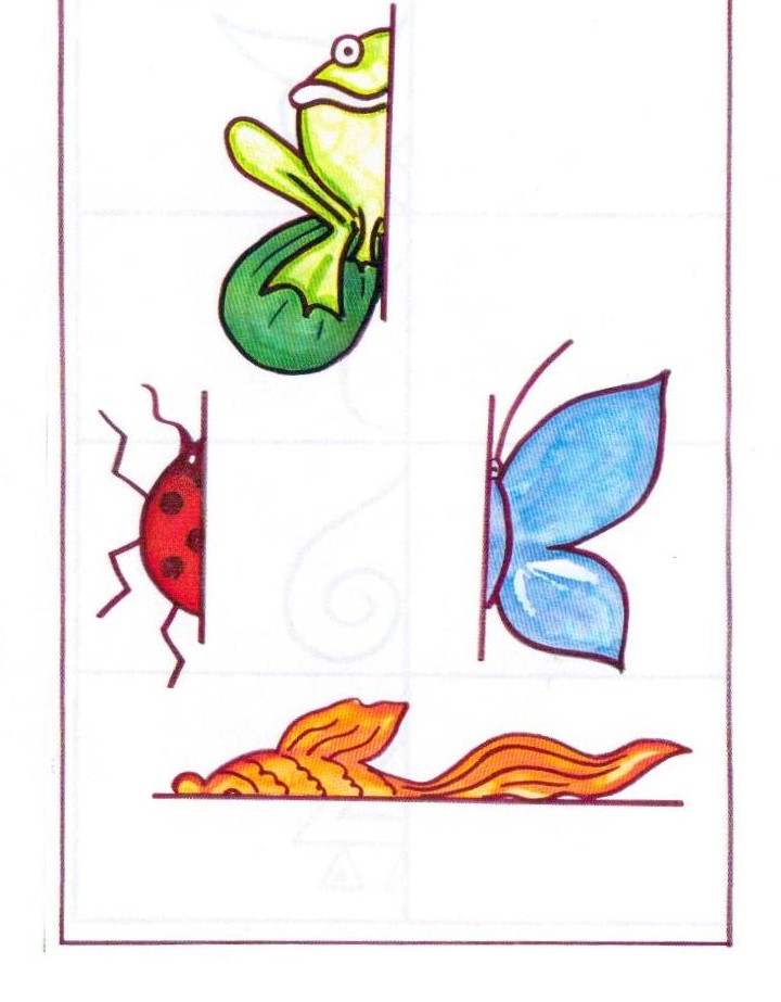 Цель: упражнять в умении дорисовывать вторую половину картинки, повторяя первую. Развивать чувство симметрии, воображение.
