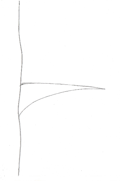 1) Расположить лист А4 в вертикальном положении. Нарисовать с правой стороны слегка волнистую линию (ствол дерева), далее по середине листа нарисовать ветку.