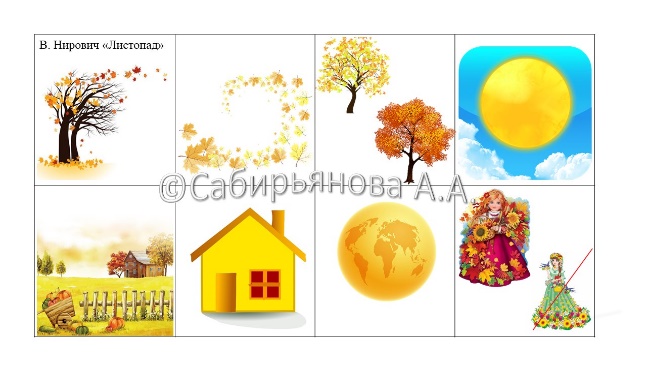 Октябрь, №3 | Заучивание стихотворения Н. Мирович «Листопад» | Формировать способность выразительно рассказывать стихотворение, используя мнемотаблицу. Упражнять в подборе определений к заданному слову. |