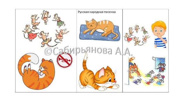 | Мыши водят хоровод, На лежанке дремлет кот. Тише, мыши, не шумите, Кота Ваську не будите. Вот проснется Васька-кот, Разобьет весь хоровод. |
