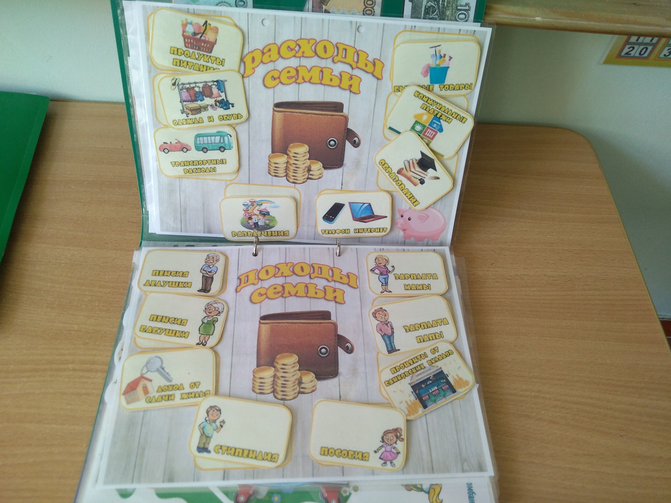 1. Игра на липучках «Доходы-расходы семьи». Цель- формирование знаний о понятии «доход-расход» в семейном бюджете.