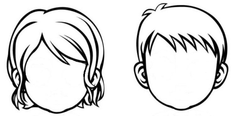 Нарисовать (с помощью) лицо девочки и мальчика.