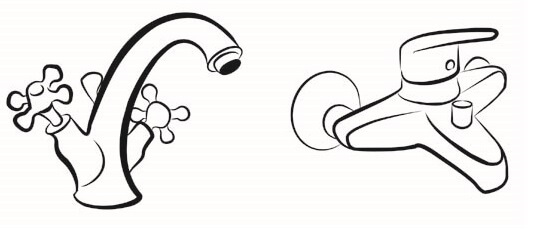 Нарисовать такие значки на рисунке. На первом рисунке один кран красный, другой – синий. На втором рисунке закрасить кружок под рычажком (половина красный, половина синий).