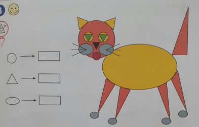 - Осталась ещё одна фигура, которая живёт в домике, что это за фигура? Какой формы у неё нос? Рот?