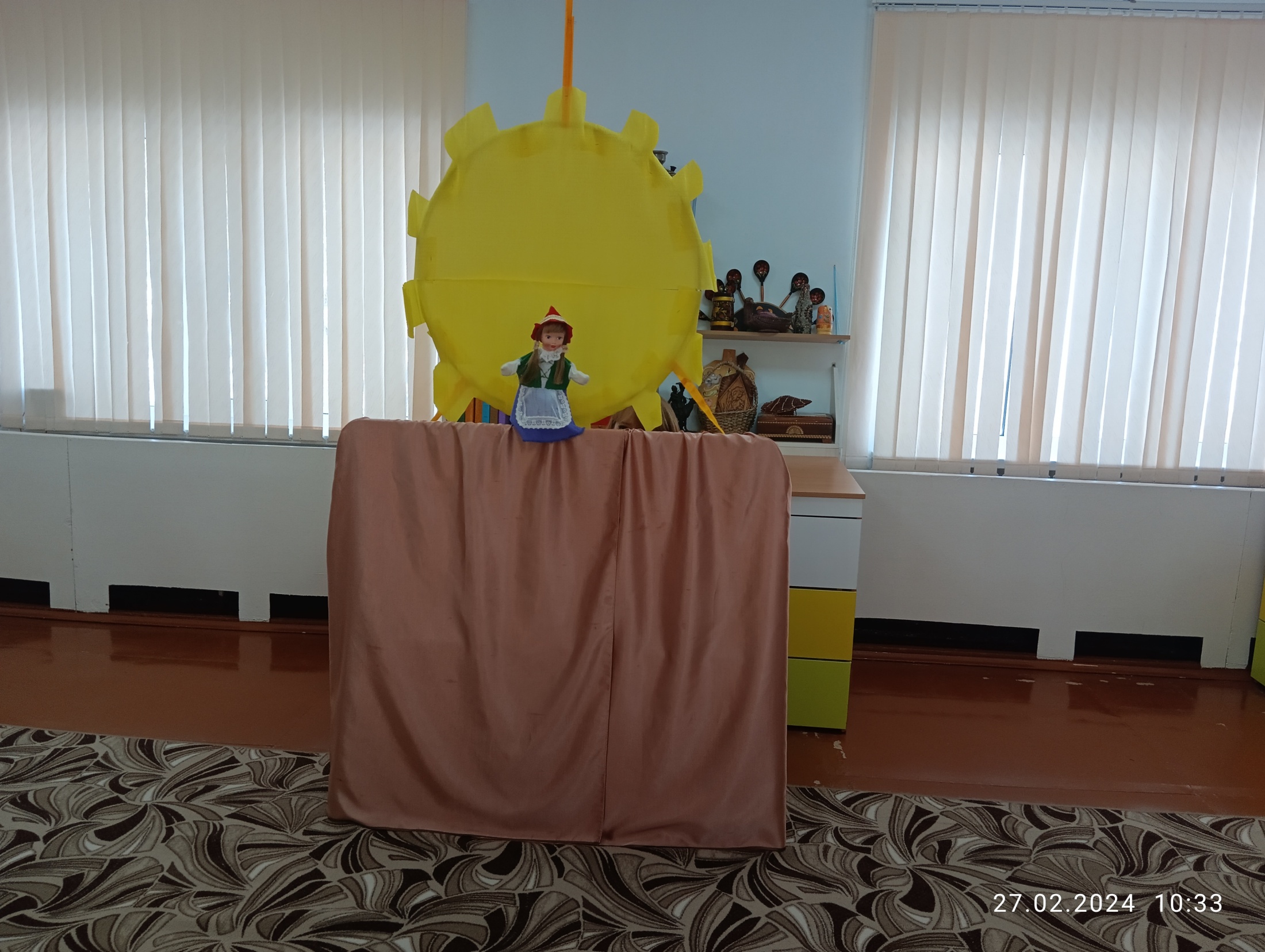 За ширмой раздается звон колокольчика.