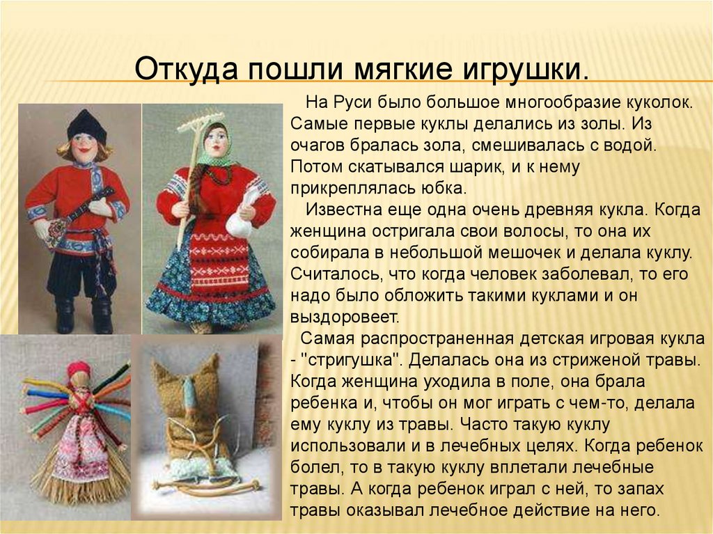 Программное содержание | Мягкая игрушка и история ее возникновения. Назначение и разновидности мягких игрушек. Фабрики мягких игрушек и ручное производство. Особенности и технология изготовления. |